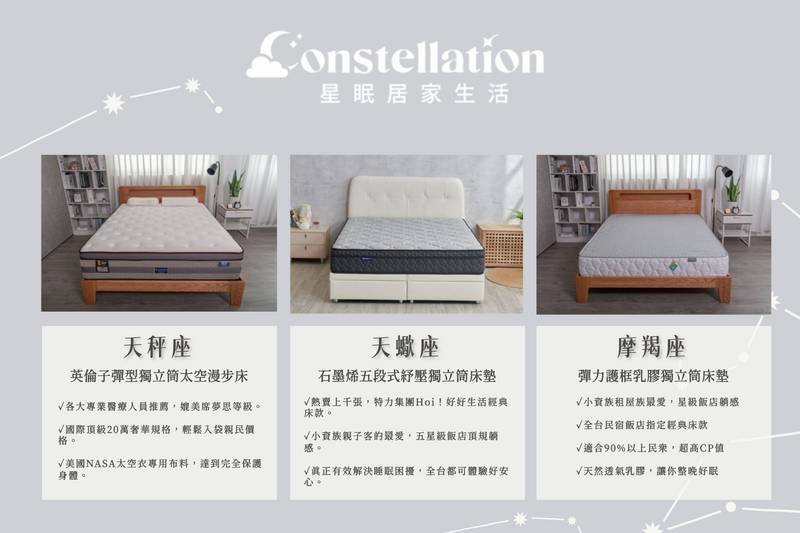 主力 星座床墊系列 已進駐全台特力 Hoi 好好生活門市,也是多家飯店與民宿指定愛用;大安區巷弄中的直營門市,每年銷售破萬張,深受市場肯定。🛏️