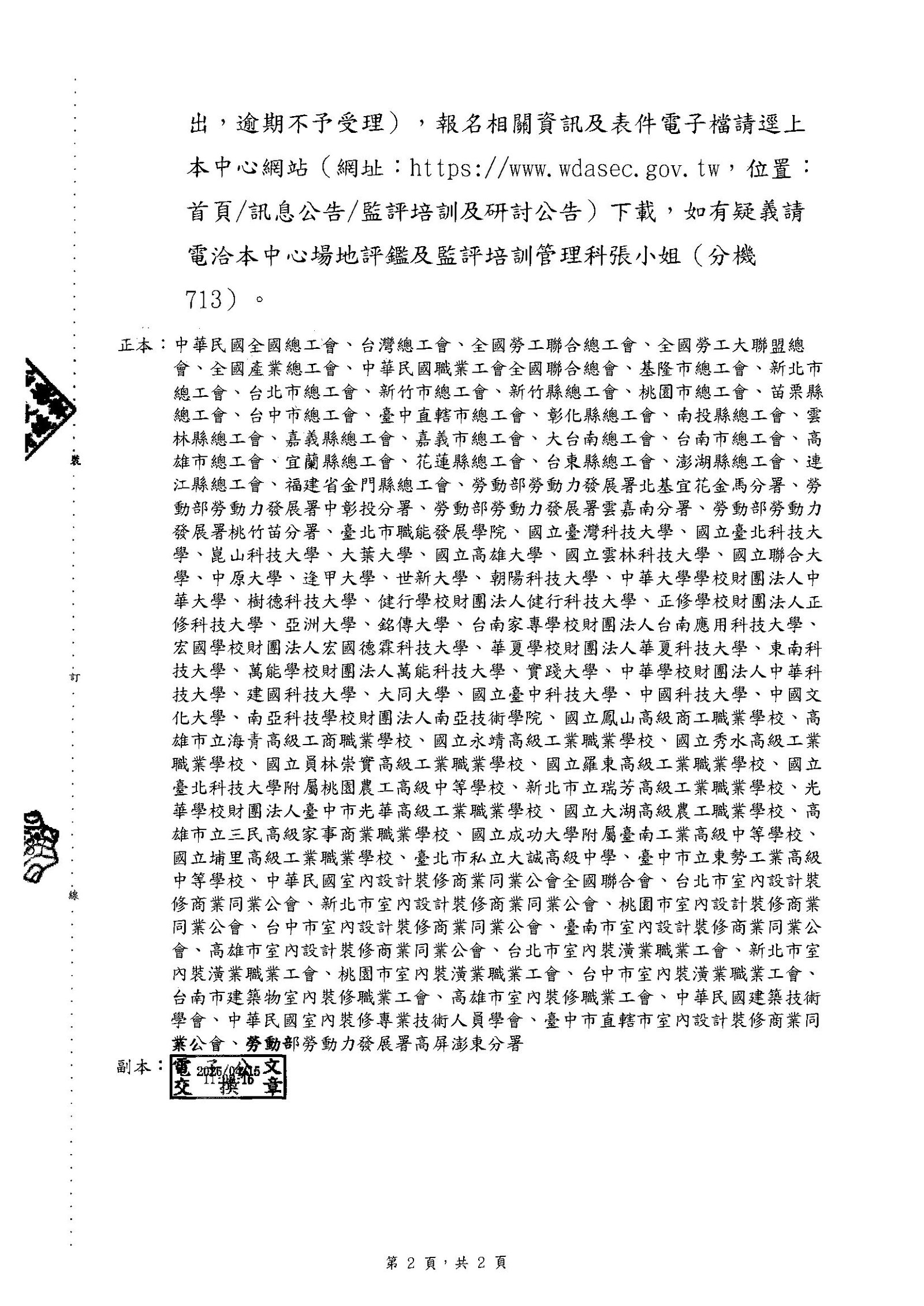 勞動部勞動力發展署技能檢定中心 | 公告辦理建築物室內裝修工程管理乙級術科測試監評人員資格培訓
