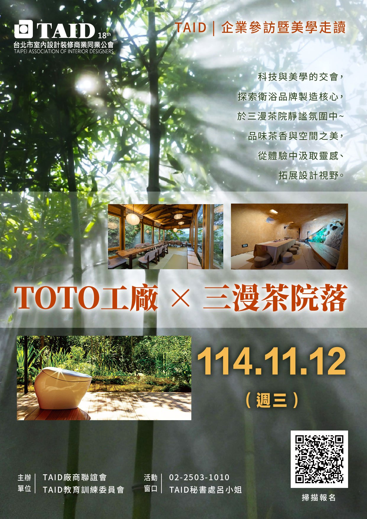 走進科技與美學的交會,體驗衛浴品牌的製造核心,並在三漫茶院落的靜謐氛圍中品味茶香與空間的細節。活動結合專業製造導覽與生活美學體驗,讓設計師從品牌現場中汲取靈感,拓展設計思維。