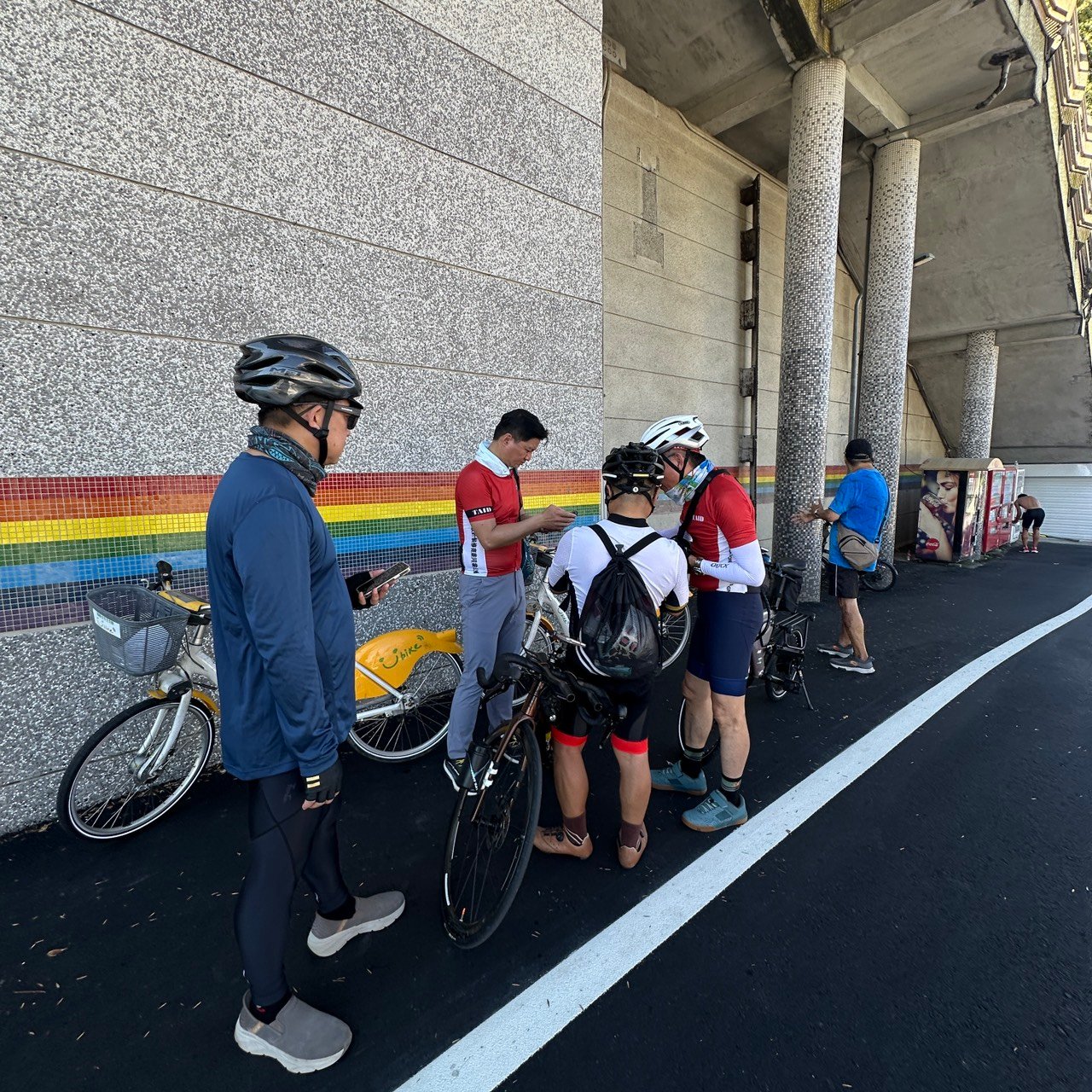最後抵達 💧 公館水岸廣場,再返回出發點 🌉 完成一趟充滿風景與歡笑的城市騎行!