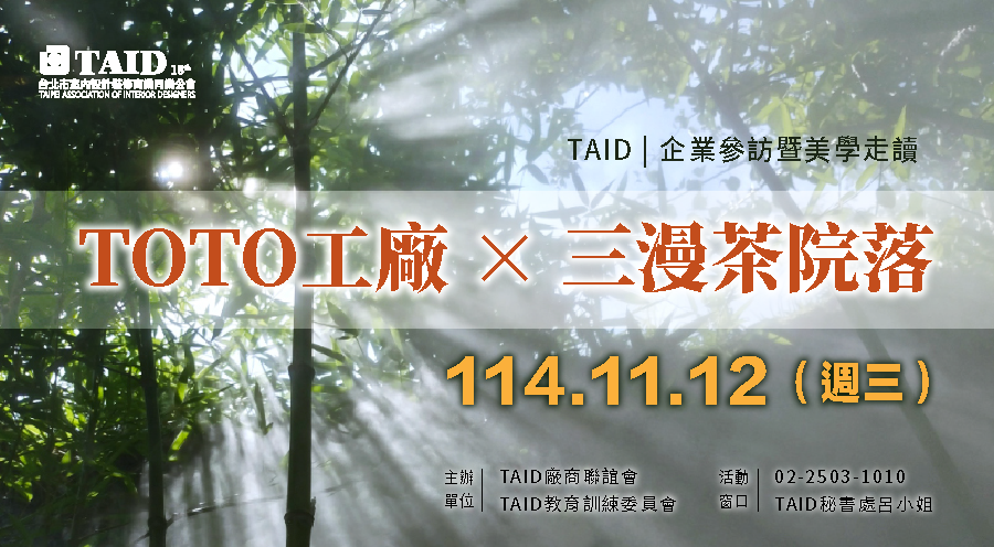 報名專區 公會講座/課程 友會講座/課程 聯誼社活動 參訪/旅遊活動 活動行事曆 人文講堂空間租借 公會講座/課程 友會講座/課程 聯誼社活動 參訪/旅遊活動 活動行事曆 人文講堂空間租借 參訪/旅遊活動 搜尋:日期搜尋 參訪/旅遊活動 TAID | 企業參訪暨美學走讀 2025 年 10 月 9 日 參訪/旅遊活動 TAID | 企業參訪《新北市美術館》X《湯石照明台北總部》 2025 年 9 月 22 日 參訪/旅遊活動 TAID 114年度中秋旅遊活動|建築設計走讀暨聯歡晚宴 2025 年 7 月 7 日 參訪/旅遊活動 TAID室內建築走讀|靈糧山莊 2025 年 6 月 9 日 參訪/旅遊活動 TAID國際走讀|《京都大阪建築設計走讀之旅》 2025 年 3 月 3 日